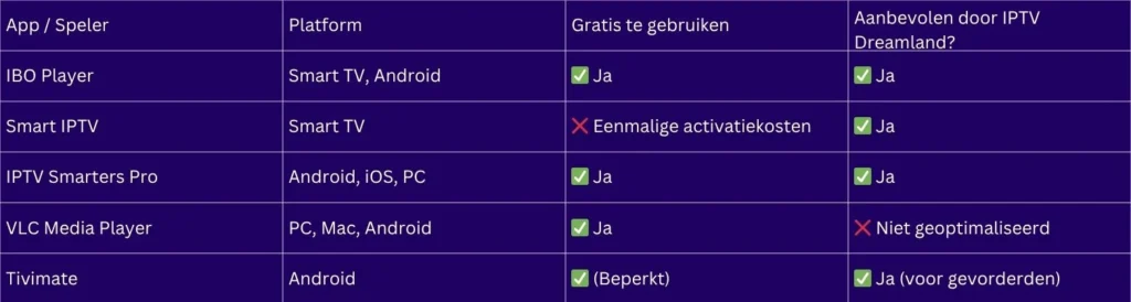 📊 Vergelijking: Gratis IPTV apps en software